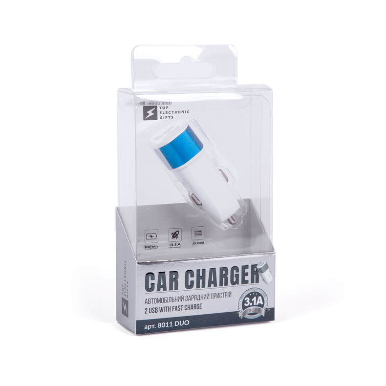 Компактний пристрій-перехідник з USB роз'ємом до прикурювача автомобіля. Корпус з пластику та алюмінію. 2 USB- порта, вбудований запобіжник. Вхідні параметри 12-24 В. Вихідні параметри 5В, 3,1А (Quick Charge). Додаткові перехідники та кабелі в комплект не входять.