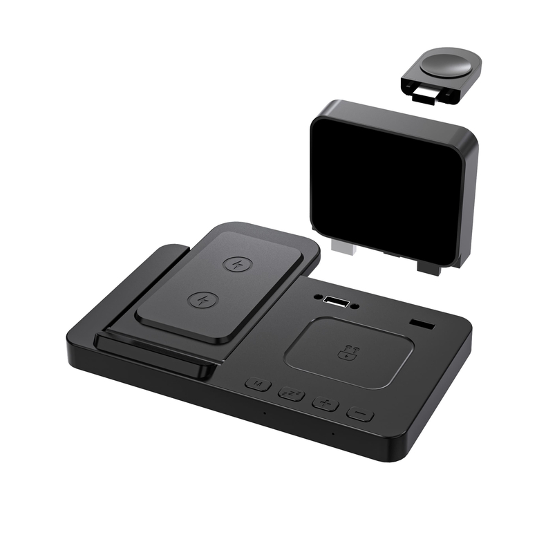 Телефон встановлюється на підставку, навушники TWS — на мат, а смарт годинник — на спеціальну підставку. Зарядний пристрій забезпечує вихідну потужність 15 Вт при розміщенні одного пристрою на підставці та інтелектуально регулює вихідну потужність від 5 до 10 Вт, залежно від потреб енергоспоживання пристрою. Цифровий будильник, що йде в комплекті, живиться від літієвої батареї. Годинник отримав LED-екран з можливістю відображення часу у форматах 12 годин та 24 години, 5 рівнів регулювання яскравості та кнопку відкладеного сигналу.