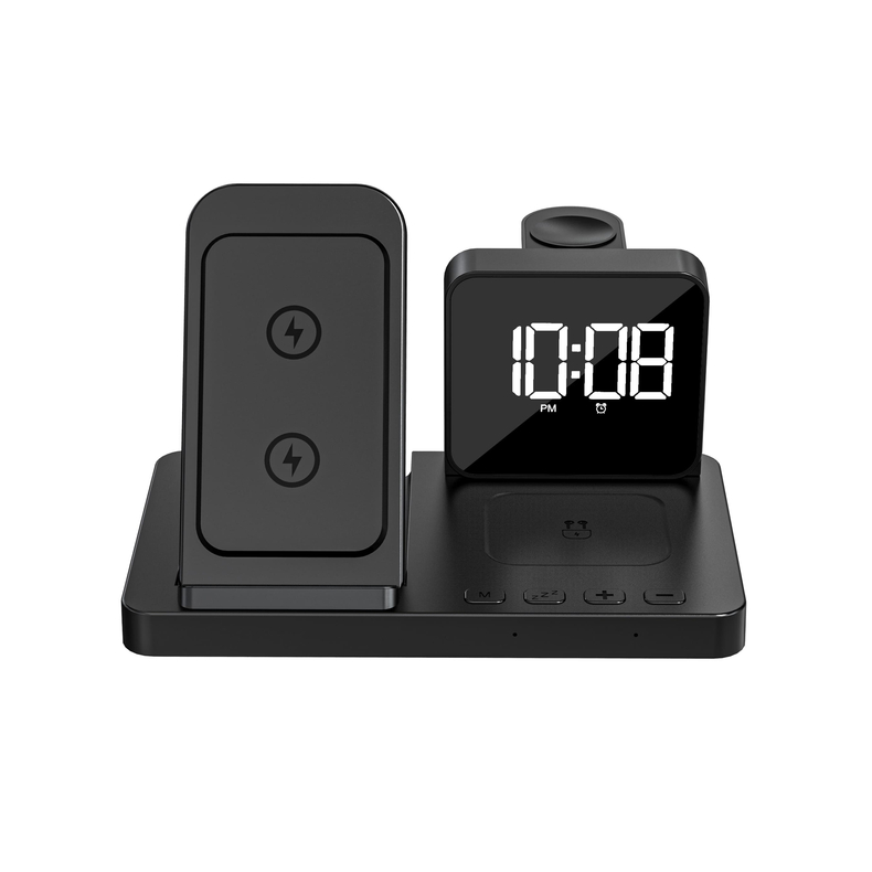 Бездротовий зарядний пристрій з годинником CONVEE. Можна заряджати смартфон, смарт годинник Apple Watch, навушники. Рекомендовано заряджати через блок живлення QC3.0 quick charge.