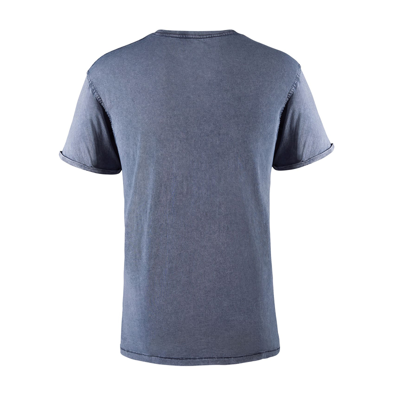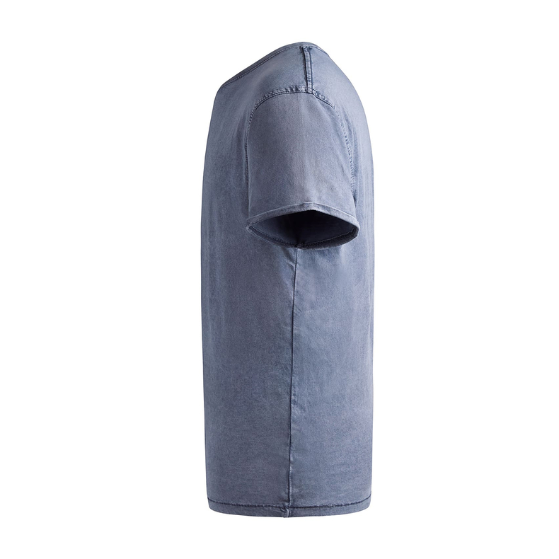 Футболка з короткими рукавами, злегка приталеною талією та ефектом прання. Чесана бавовна. Круглий ребристий комір 1x1. Виріз горловини оброблений стрічкою з тканини в тон. Подвійні шви з боків та пройм. Декоративна строчка на рукавах та подолі з посиленими деталями подолу