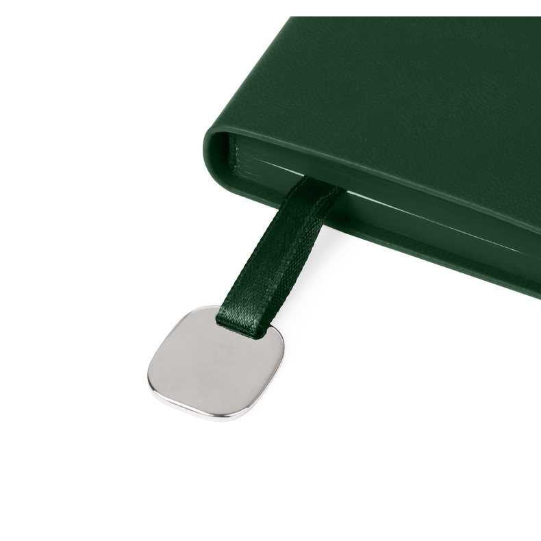 Записна книжка в м’якій обкладинці, з закладкою та металевим елементом. Розмір металевого елементу 17 х 20мм. Кремовий папір в клітинку. Торці пофарбовані у колір обкладинки
