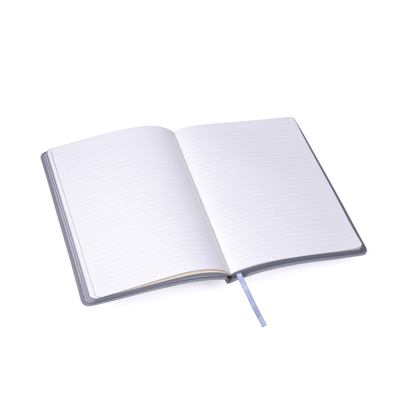 Записна книжка Vogue має м'яку обкладинку, кремовий папір, боковини та форзац сірого кольору, 128 аркушів.