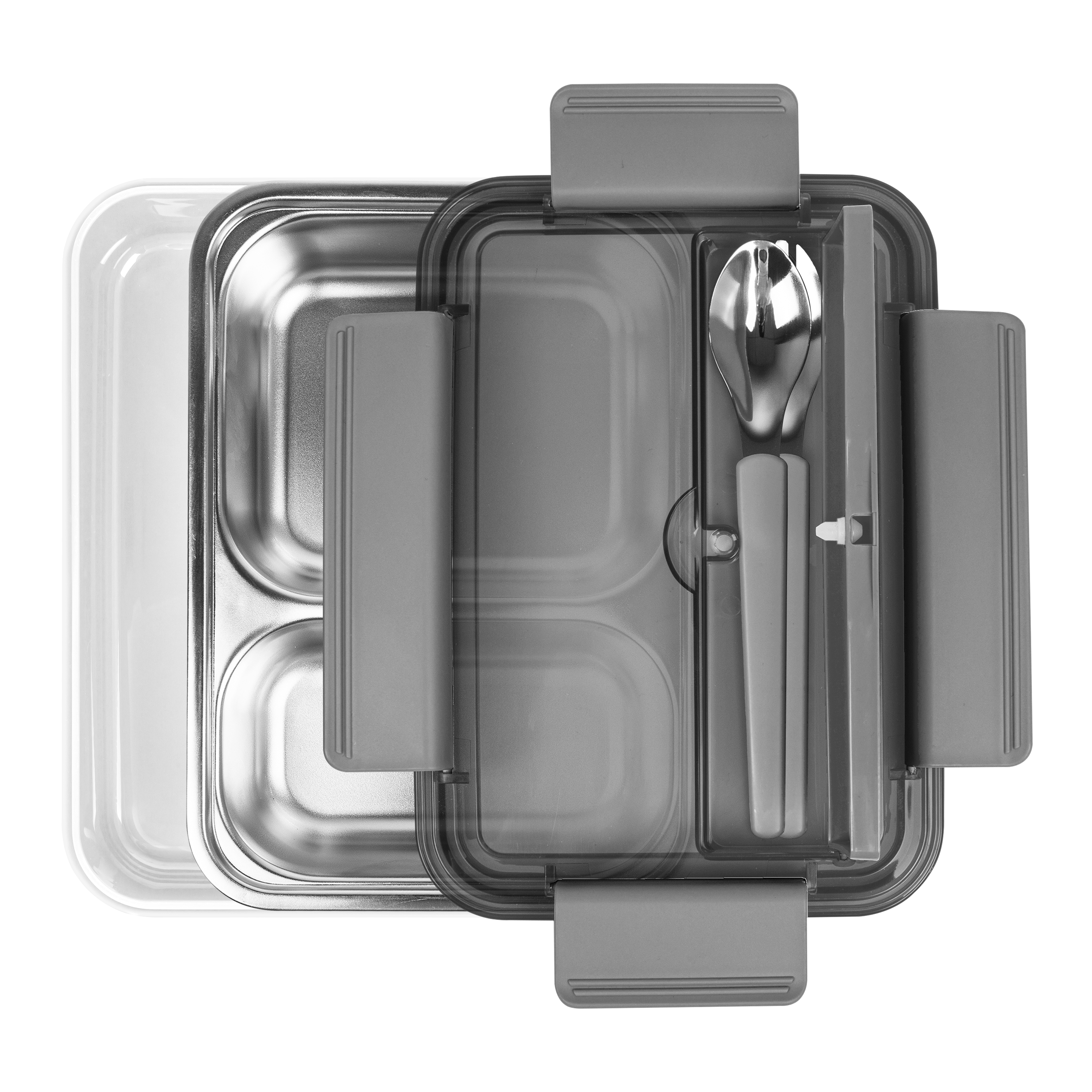 Має прозору кришку, яка герметично закривається з додатковим відділенням, де зберігається виделка+ложка (в комплекті металева ложка+виделка). Посудина на два відділення з високоякісної нержавіючої сталі 304 . Об'єм: 800 мл. Розмір 22,5 х 16 х 7 см. В подарунковій картонній коробці. Розмір індивідуальної коробки: 22,8 х 16,5 х 7,8 см. Метод нанесення: шовкодрук, тамподрук, уф-друк.