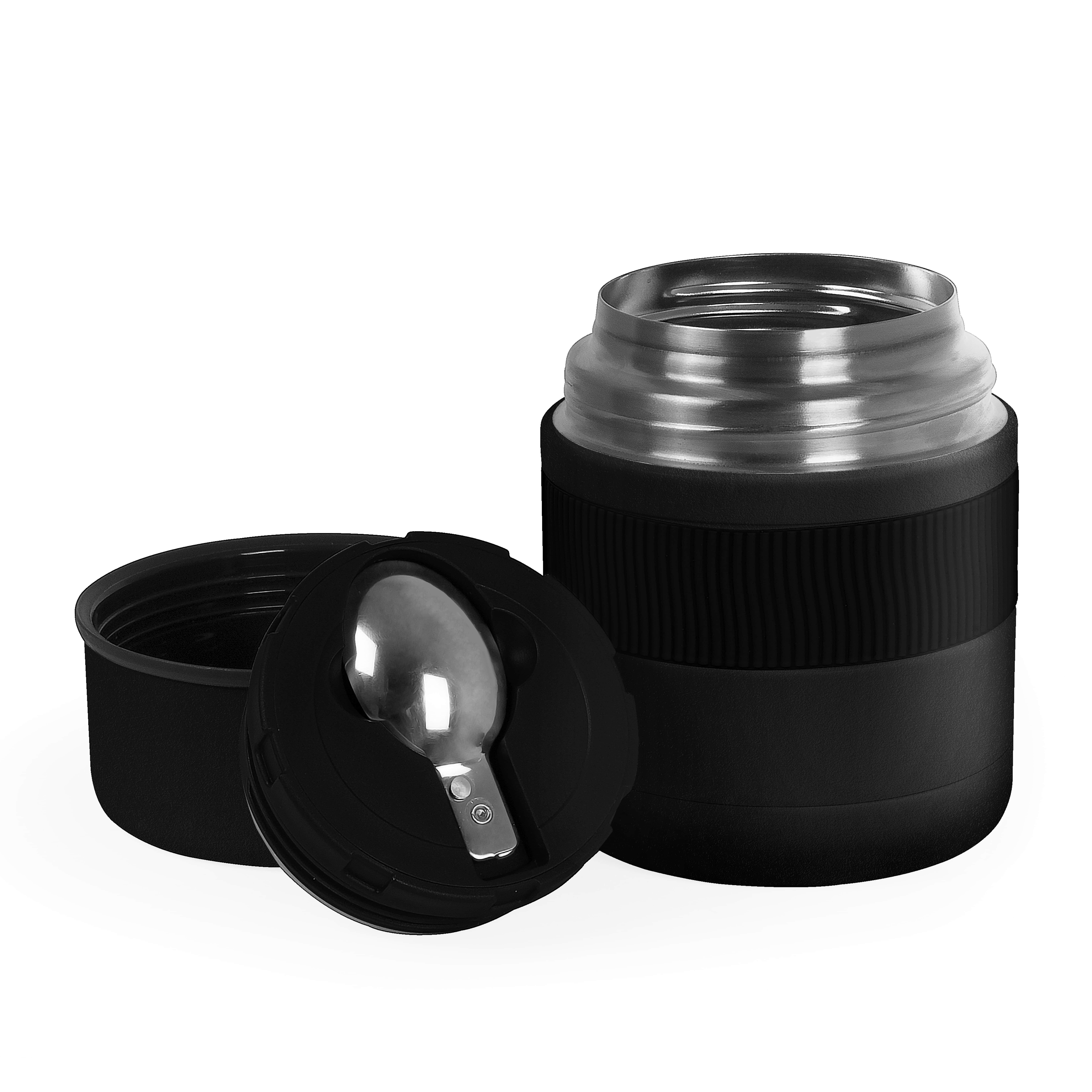 Термос для їжі з нержавіючої сталі, має подвійну вакуумну стінку, внутрішня частина з високоякісної харчової нержавіючої сталі 304. Зберігає холод до 24 години, тепло до 12 годин. Об'єм 500 мл. В комплекті: зручна складна сталева ложка, та кришка, яка може послужити за миску. Широка горловина дозволяє зручно наповнювати та мити контейнер.Індивідуальна картонна подарункова коробка. Розмір індивідуальної коробки: 15,5 х 11,2 х 11,2 см. Діаметр місця нанесення на кришці 8,5 см.