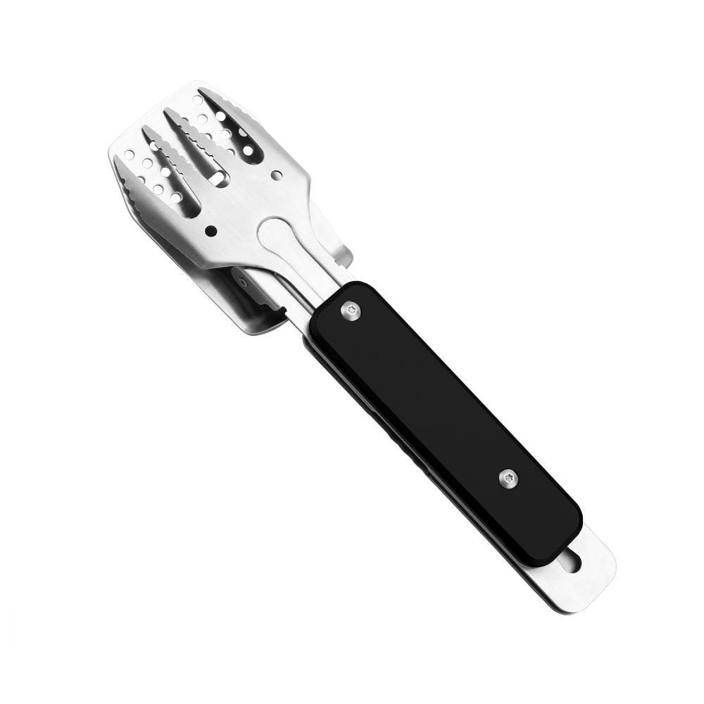 Багатофункціональний набір для барбекю, виконаний з нержавіючої високоякісної сталі. Трансформується в усі необхідні інструменти для приготування страв на вогні: вилка для грилю, лопатка, щипці, відкривачка. Вага 268,2 грама.