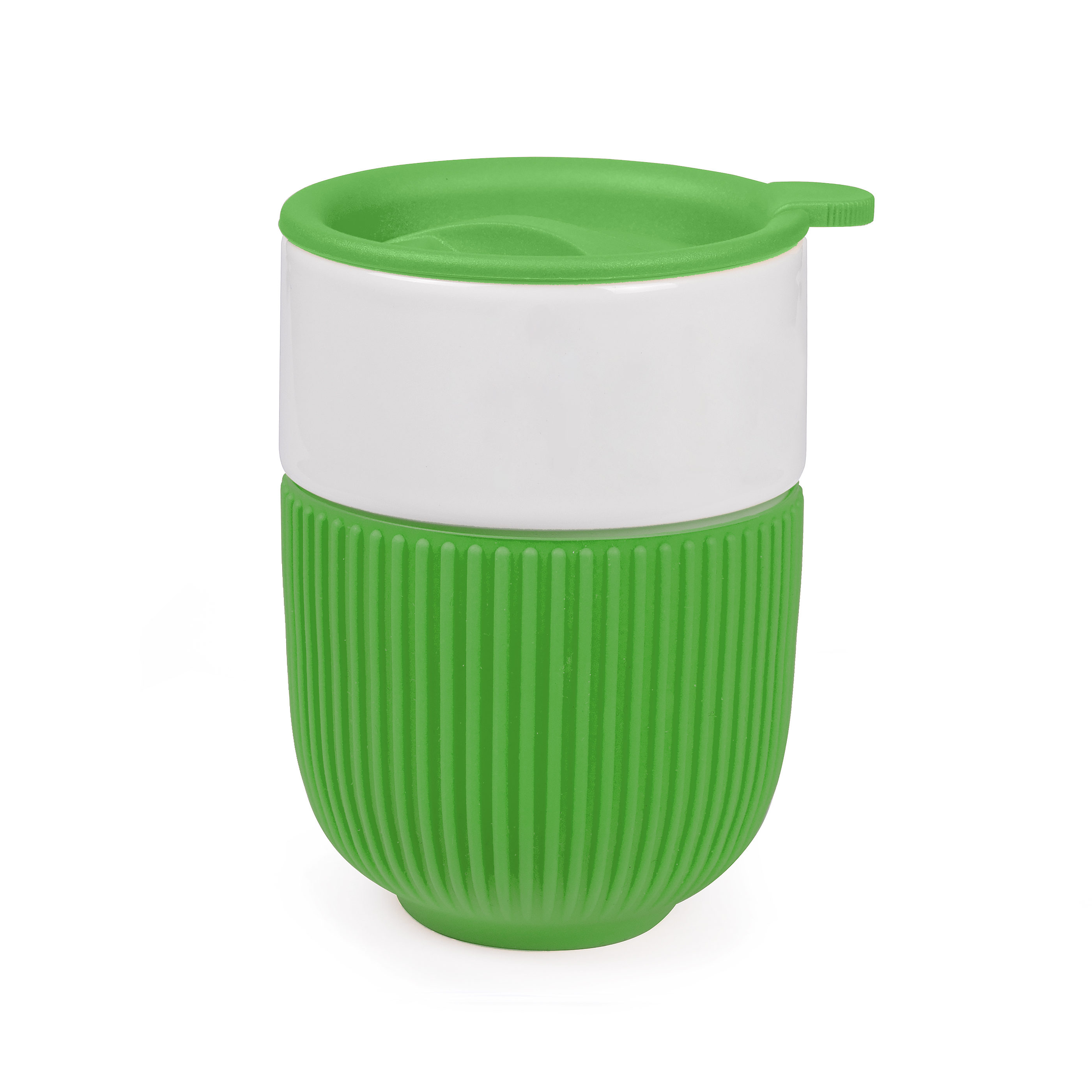 Горнятко керамічне з пластиковою кришкою та силіконовою накладкою.