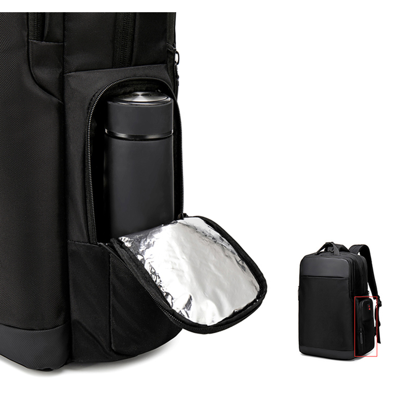 Рюкзак з відділенням для ноутбука 15,6” та відділенням для ipad . Тканина водонепроникний 100% поліестер + PU, має USB Port, захистний кодовий замок, великий відділ з еластичними ремінями для одягу та різні кармани-органайзери, прихована кишеня на лямці для карток, бокова термо-кишеня для пляшки, на задній спинці ремінь для валізи. Також рюкзак має, крім вертикальної ручки, горизонтальну і може трансформуватися в сумку, при цьому задні лямки ховаються в приховане відділленя. Рюкзак можливо збільшити в об'ємі за рахунок складеного відділення.