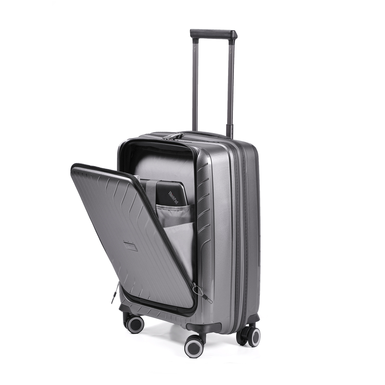 Надлегка дорожня валіза, 100% поліпропілен високої якості, полегшений та водночас більш міцний. Водозахисна блискавка. Попереду кишеня для швидкого доступу до найнеобхідніших речей та гаджетів. Вбудований USB-порт для зарядки пристроїв. Розмір ручної поклажі. Вага 2,5 кг.