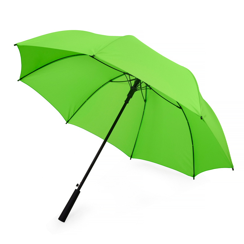 Парасоля-тростина напівавтомат з зручною пластиковою ручкою покритою софт-тач, довжина парасолі 94 см, спиці та відкривний механізм виготовлені зі скловолокна та пластику, металевий стержень.