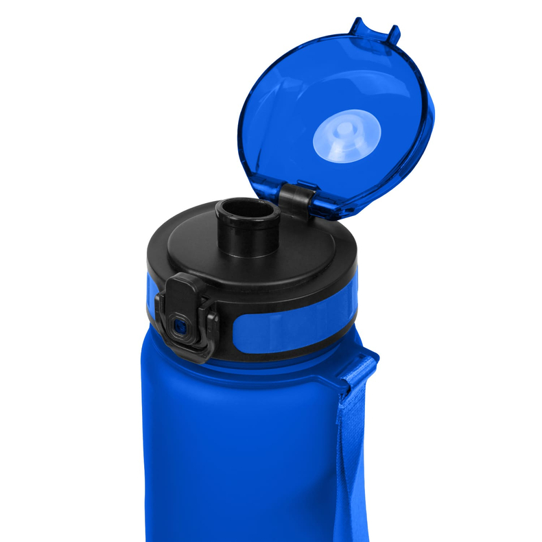 Пляшка для пиття ергономічної форми. Кришка з надійним відкидним механізмом який блокується, має ручку для зручного тримання. Матеріал: Tritan-пластик, силіконова вставка