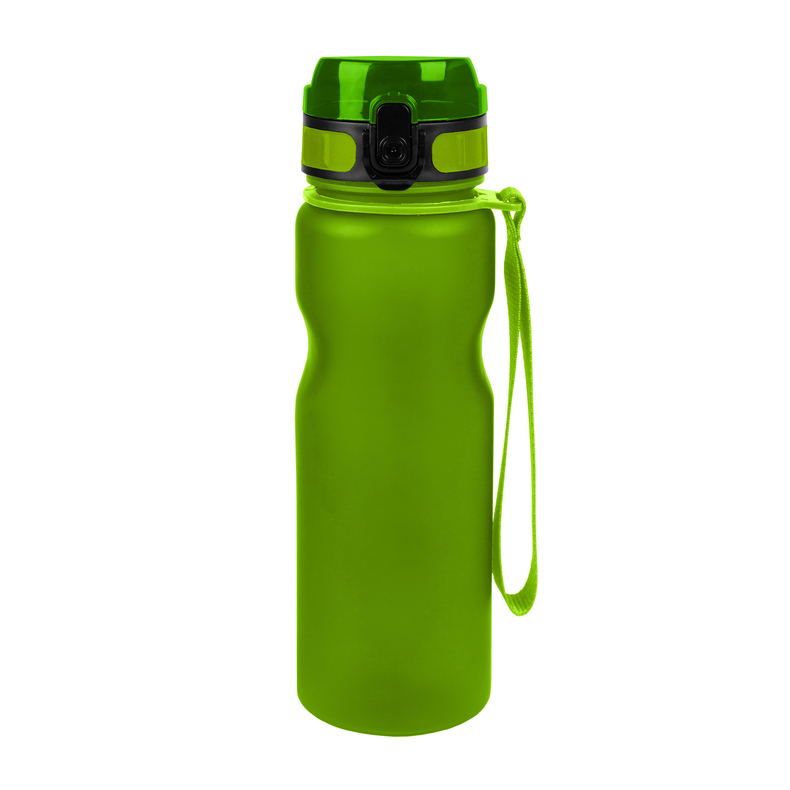 Пляшка для пиття ергономічної форми. Кришка з надійним відкидним механізмом який блокується, має ручку для зручного тримання. Матеріал: Tritan-пластик, силіконова вставка