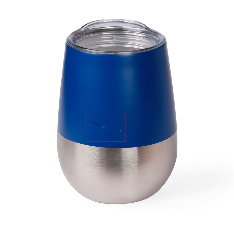 Металева термочашка з подвійними стійками з нержавіючої сталі і пластиковою прозорою кришкою з отвором. Кришку можна мити в посудомийній машині. Корпус мити тільки вручну, щоб не пошкодити кольорове покриття. Підтримує гарячим напій протягом 3 годин, холодним протягом 6 годин. Висота 11,4 см.
