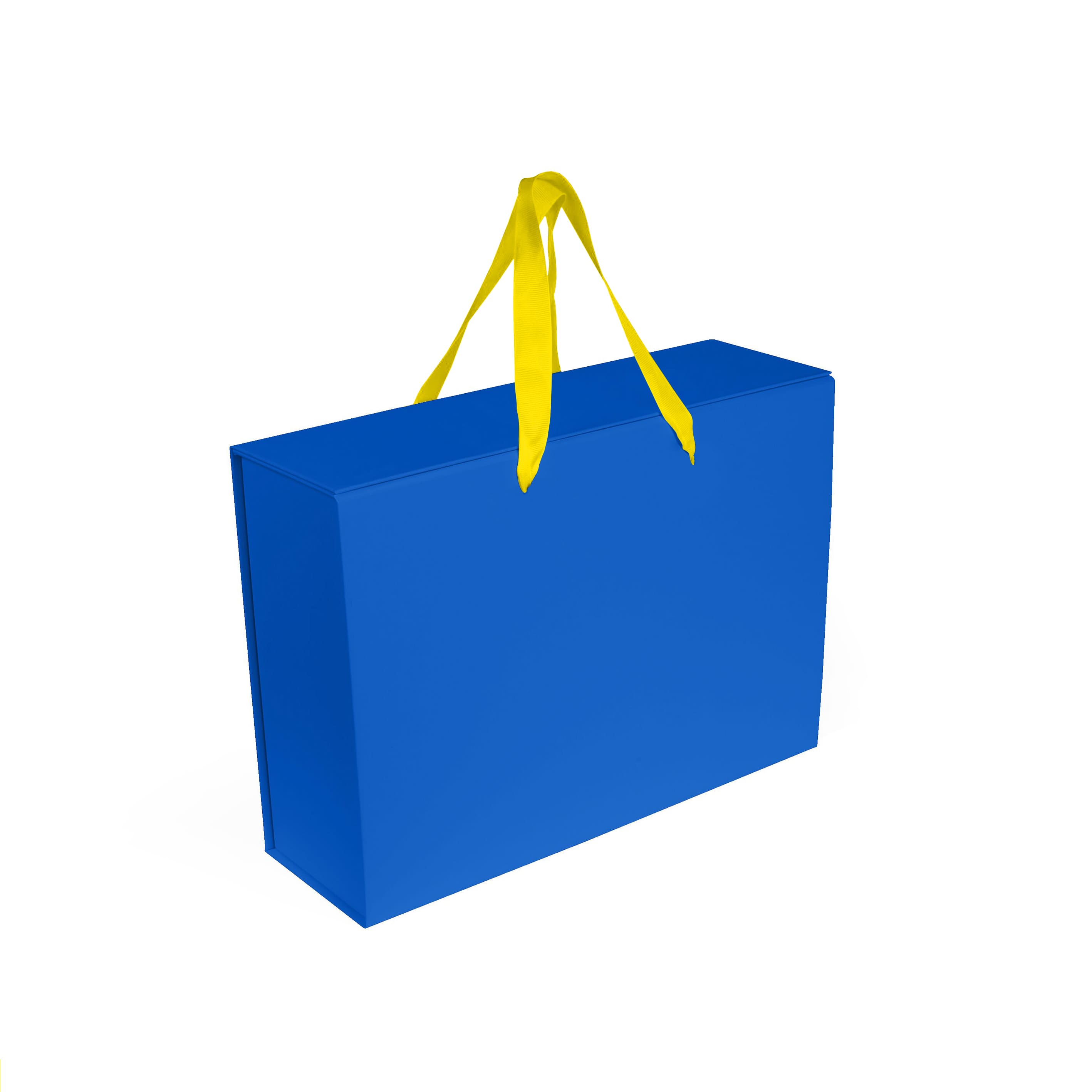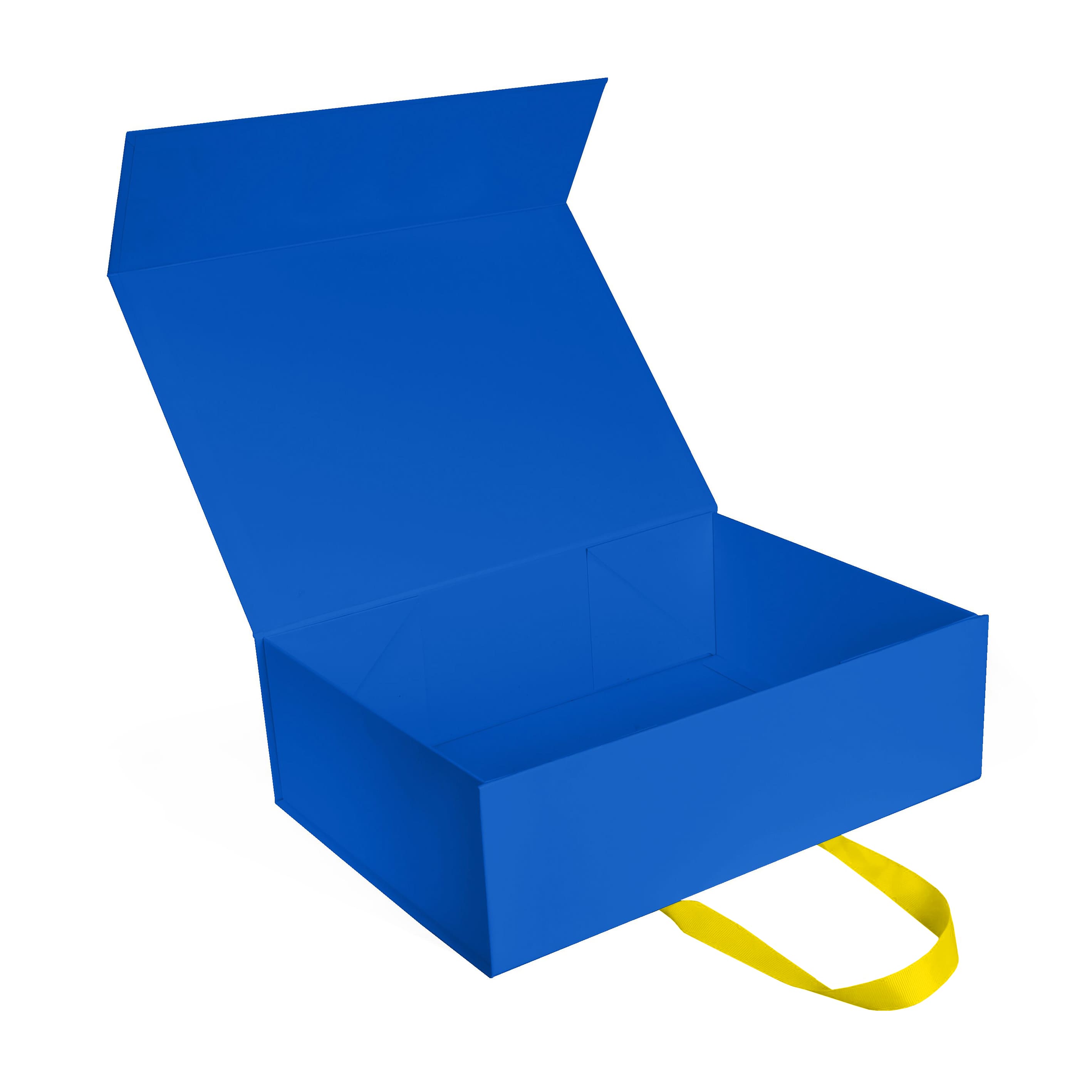 Коробка складна з твердого, переплетеного картону, з двома ручками, вкрита дизайнерським папером. Кришка на магнітах